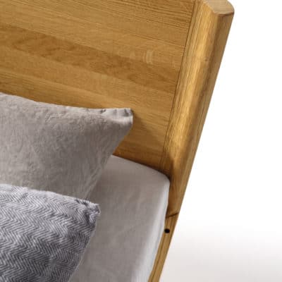 Auf den ersten Blick sieht es aus, als würde das TIMES Bett schweben. Die leichte Anmutung verdankt das Bett seiner raffinierten Konstruktion ohne sichtbare Beine. Ebenso raffiniert: die scheinbar ganz simple Formensprache kombiniert geschickt klare, gerade Elemente mit dezenten Rundungen. Heraus kommt dabei ein Bett, das trotz seiner luftig-leichten Optik viel Sicherheit und Geborgenheit vermittelt. Auf Metall wird bei der cleveren Konstruktion des Bettes übrigens verzichtet. Stattdessen kommen stabile Holzsteckverbindungen zum Einsatz, durch die sich der Auf- und Abbau des Bettes besonders komfortabel gestaltet.