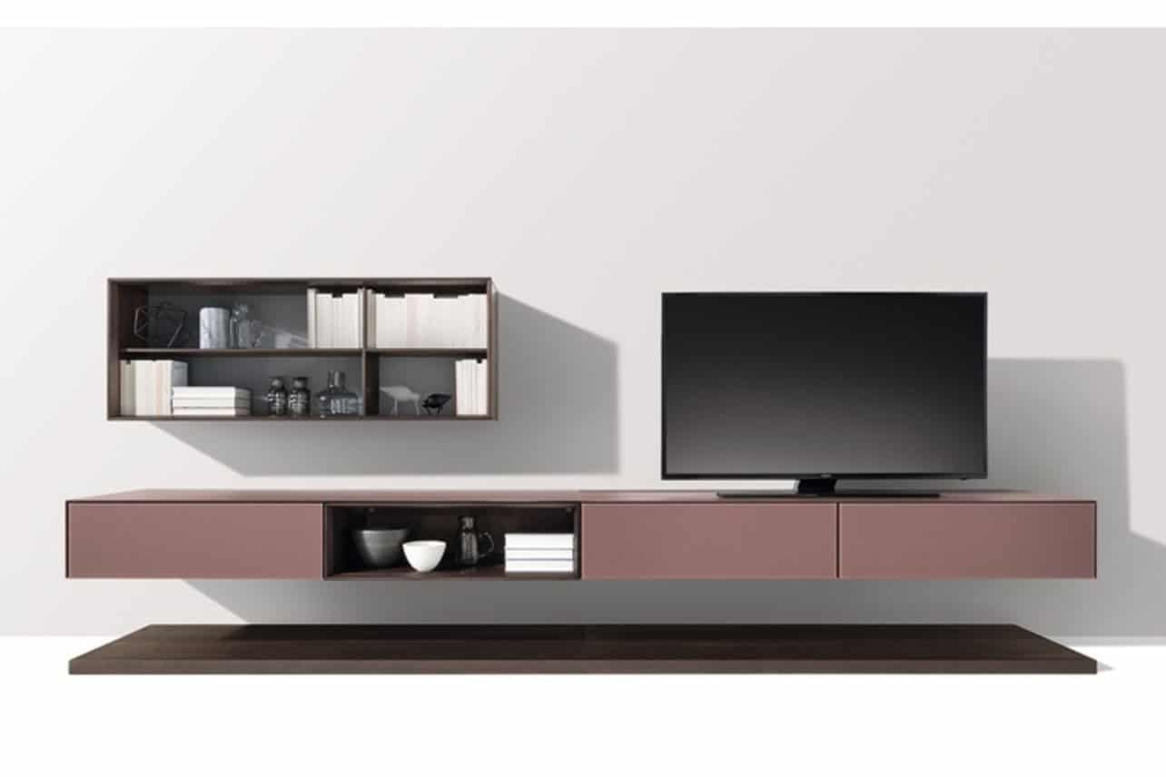 Zentrales Gestaltungsmerkmal beim CUBUS PURE Wohnprogramm ist das zarte Farbglas, das die Fronten wie ein Passepartout einfasst. Dabei sorgen die feinen Glaskanten und der rückspringende Sockel für eine leichte, schwebende Optik.